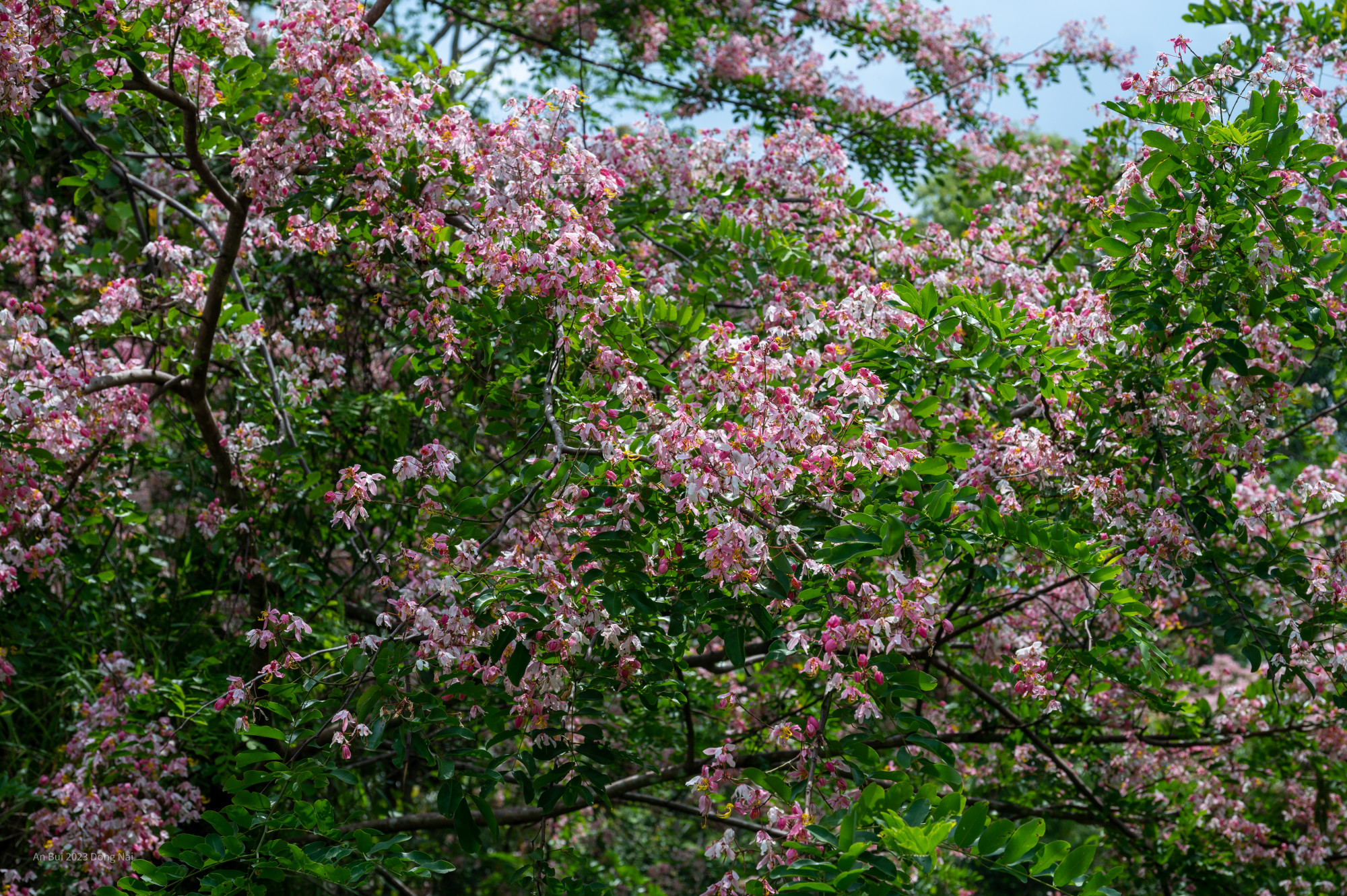 Hoa đào tại vườn quốc gia Nam Cát Tiên bắt đầu bung cánh vào cuối tháng tư, nở rộ trong suốt tháng năm, kéo dài đến tháng sáu. Đặc trưng của loài hoa này là nở thành từng cụm lớn; hoa có cánh mịn; sắc hoa màu hồng tươi hoặc trắng. Tại rừng Cát Tiên, các cây đào thường mọc thành từng dải dài cả km, nên khi hoa đồng bó sắc, tạo nên bức tranh thiên nhiên tuyệt đẹp. Bạn có thể xem, chụp hình, kiểm tra hoặc thiết kế những căn hộ "ngủ" trong cùng rừng hoa.