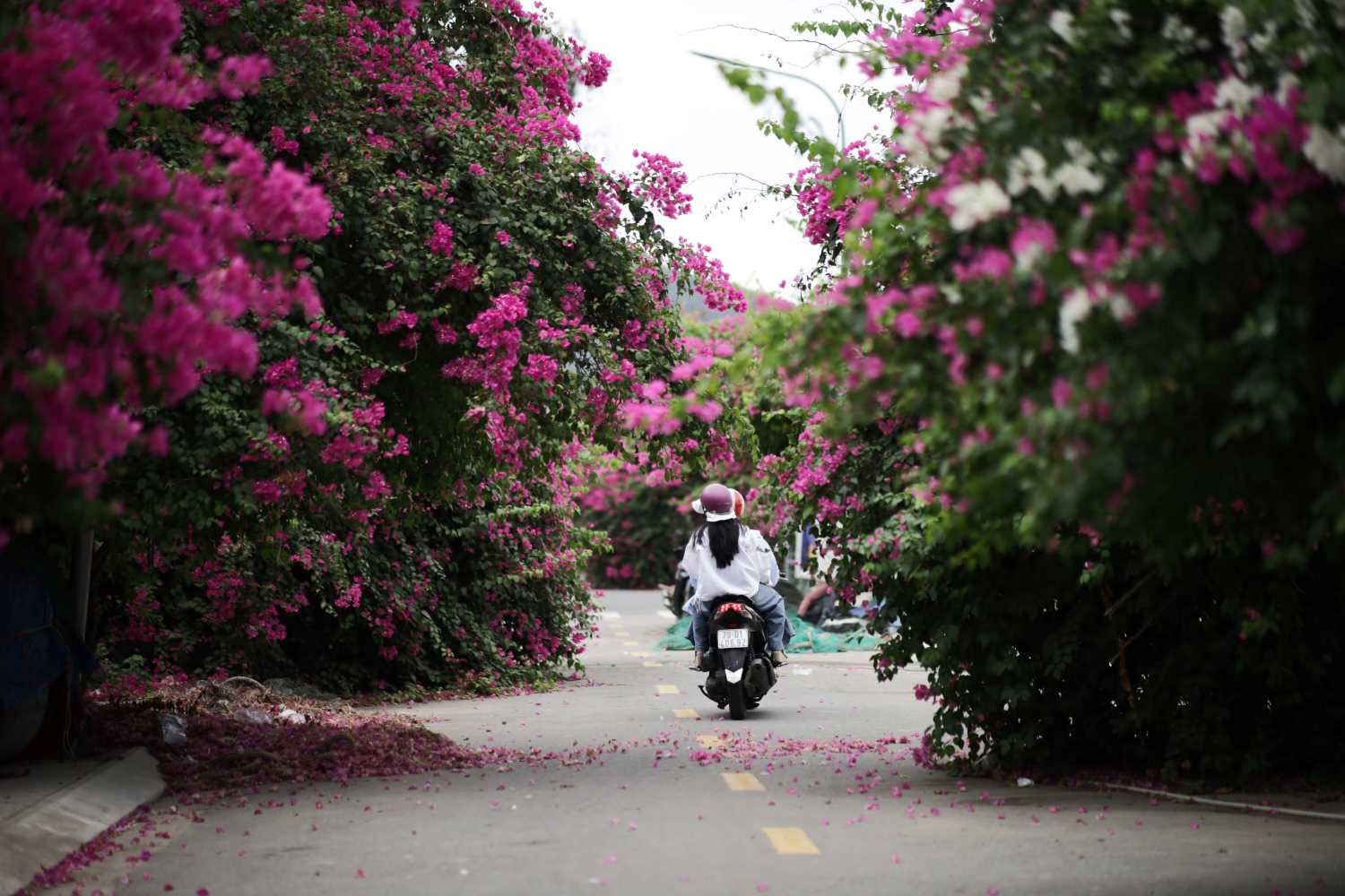 Với vẻ đẹp huyền bí và lãng mạn, con đường hoa giấy không chỉ thu hút các cặp đôi yêu thích sự yên tĩnh và lãng mạn mà còn là điểm đến lý tưởng cho những ai muốn tìm một không gian "sống ảo" tuyệt vời. Những chiếc smartphone không thể thiếu trong hành trình khám phá vẻ đẹp Nha Trang, khi bạn được thoải mái tạo kiểu dáng giữa hàng hoa bông giấy rực rỡ, để lưu lại những khoảnh khắc khắc ngọt ngào.